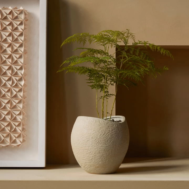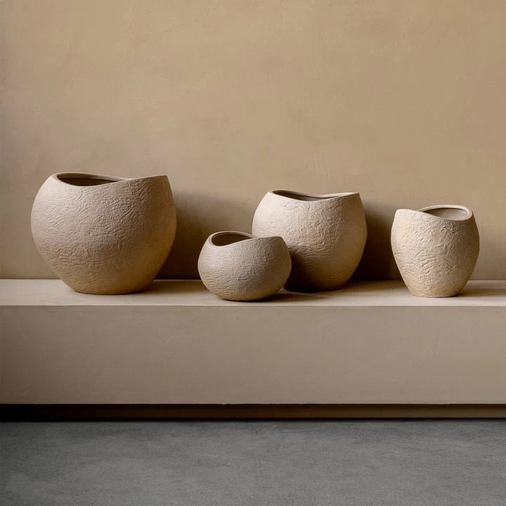 De Plantas plantenpot van het Scandinavische label Audo bekoort door zijn nobele vormgeving en matte afwerking. Plantas zet de schoonheid van imperfectie op de voorgrond. De plantenpot met onregelmatig silhouet is met de hand gevormd uit steengoed en zorgt met zijn ruwe oppervlak voor een bijzonder natuurlijke uitstraling. Plantas is verkrijgbaar in verschillende maten.
