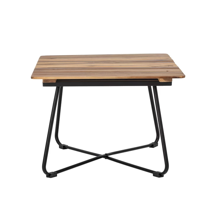 De Hampton salontafel van Bloomingville is perfect voor de zomer. Het tafelblad is gemaakt van acaciahout, terwijl de poten van zwart metaal zijn, waardoor hij geschikt is voor elk type terras. Vuil kan worden verwijderd met warm water en zeep. Onderhoud gebeurt door licht schuren en een behandeling met olie. Wanneer de salontafel niet wordt gebruikt, moet hij in een overdekte ruimte worden geplaatst.
