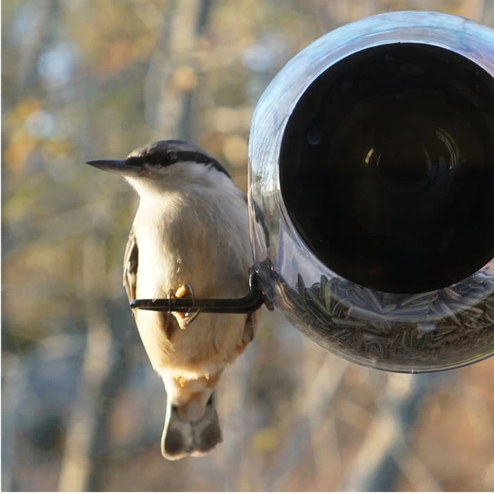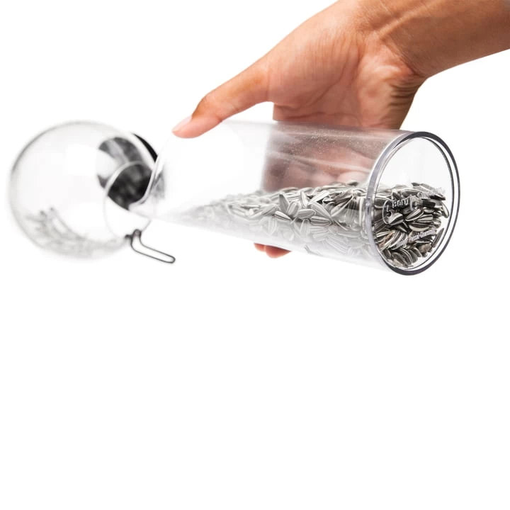 Het voederstation is geschikt voor kleine vogels, grotere vertegenwoordigers van de soort moeten om ruimte-redenen helaas buiten blijven. Een gat in de bodem van het lichaam zorgt voor de nodige afwatering bij weer en wind.