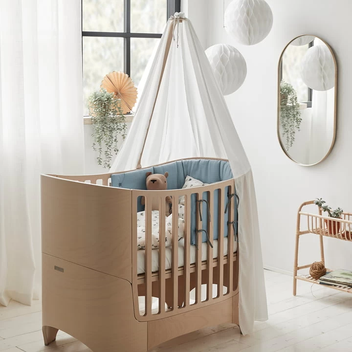 Met de luifel voor het Leander Classic babybed kunt u een beschutte en beschermde sfeer creëren voor uw kind. De luifel vormt een mooie omlijsting rond het bed en zorgt ervoor dat prikkels van buitenaf worden afgeschermd, zodat uw kind gemakkelijker kan rusten. De lichte katoenen voile is semi-transparant, zorgt voor een goede luchtcirculatie en valt heel elegant. De luifel kan eenvoudig aan het bijpassende luifelframe voor het Leander Classic babybed aan het hoofdeinde of aan het achterste zijgedeelte.