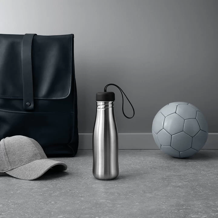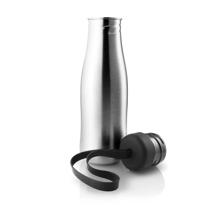 De Active drinkfles uit Eva Solo is de perfecte metgezel voor onderweg. Gemaakt van roestvrij staal, is het bijzonder licht en dus ideaal voor wandel- en dagtochten, maar kan ook worden meegenomen naar het werk of naar sport. Met zijn praktische siliconen lus kan de fles nonchalant om de pols worden gebonden of aan een gesp op de rugzak worden bevestigd. De fles wordt gesloten met een schroefdop die een betrouwbare afdichting heeft en zo perfect voorkomt dat de fles lekt.