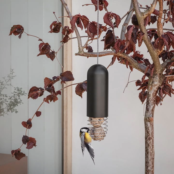De mezenbolhouder van het label Eva Solo biedt een gemakkelijke en optimale toegang voor alle soorten gevederde vrienden! Het hangende vogelvoederhuisje kan tot drie mezenbolletjes bevatten. Het voederhuisje voorkomt dat grote vogels de traktaties van de kleintjes wegpikken. Om de feeder bij te vullen, til je gewoon het zwarte deksel op. De titelknoedelhouder kan gemakkelijk met een koord aan een boom of een dakgoot van een raam worden bevestigd. Hij is gemaakt van een materiaalmix van polyester en gepoedercoat roestvrij staal.