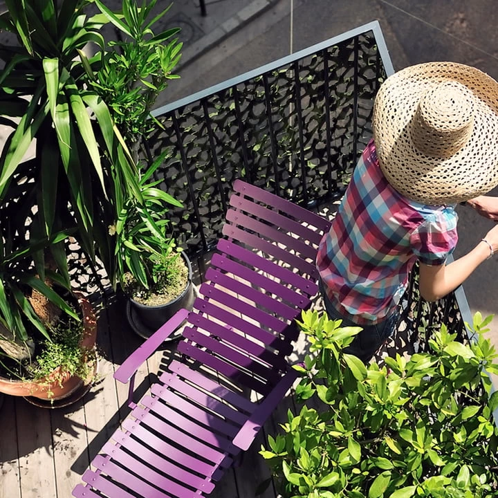 De ligstoel is een jong lid van de Bistro familie, want het werd ontworpen voor de 1 20. verjaardag van de klassieke collectie. Met zijn gelakte stalen structuur is de klassiek-moderne ligstoel uiterst robuust, weerbestendig en UV-bestendig. De gebogen latten en de in 3 standen verstelbare rugleuning zorgen voor een verrassend hoog comfort.
