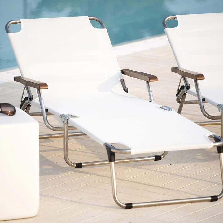 De materialen die gebruikt zijn voor de vouwbank van Fiam zijn bijzonder innovatief. Het frame is gemaakt van aluminium – dus stabiel en licht tegelijk. De bekleding van de ligstoel is gemaakt van Textilene, een high-tech stof die weerbestendig en UV-bestendig is. Textilene is zo flexibel en luchtdoorlatend dat comfortabel zitten en liggen gegarandeerd is. Het moderne textiel is ook gemakkelijk te onderhouden en te reinigen.