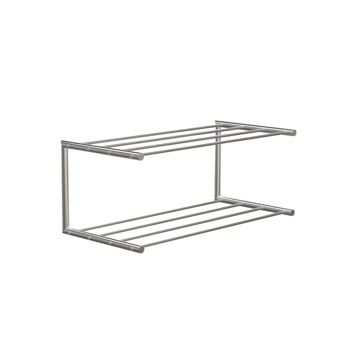De Nova Het schoenenrek van Frost bestaat uit twee met elkaar verbonden niveaus, die op hun beurt zijn gemaakt van slanke roestvrijstalen buizen en zo een optimale opbergruimte bieden voor schoenen, tassen en co. Verkrijgbaar in verschillende maten en kleuren, is het mogelijk om een individuele plankenwand te creëren met Nova kan worden gebruikt om een individuele wand van planken te creëren, of het nu in een gang thuis is of in een commerciële ruimte. Stijlvol, minimalistisch en toch zeer functioneel.