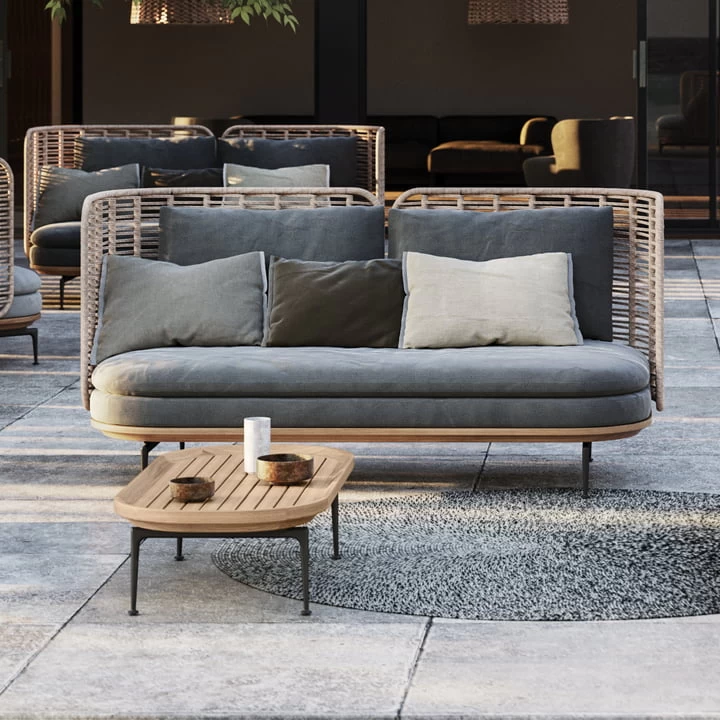 Dit Deco tapijt Outdoor van Gloster is speciaal ontworpen voor gebruik buitenshuis. Het bestaat uit zogenaamde geweven Sunbrella-koorden, die water- en weerbestendig zijn dankzij hun acrylmateriaal.