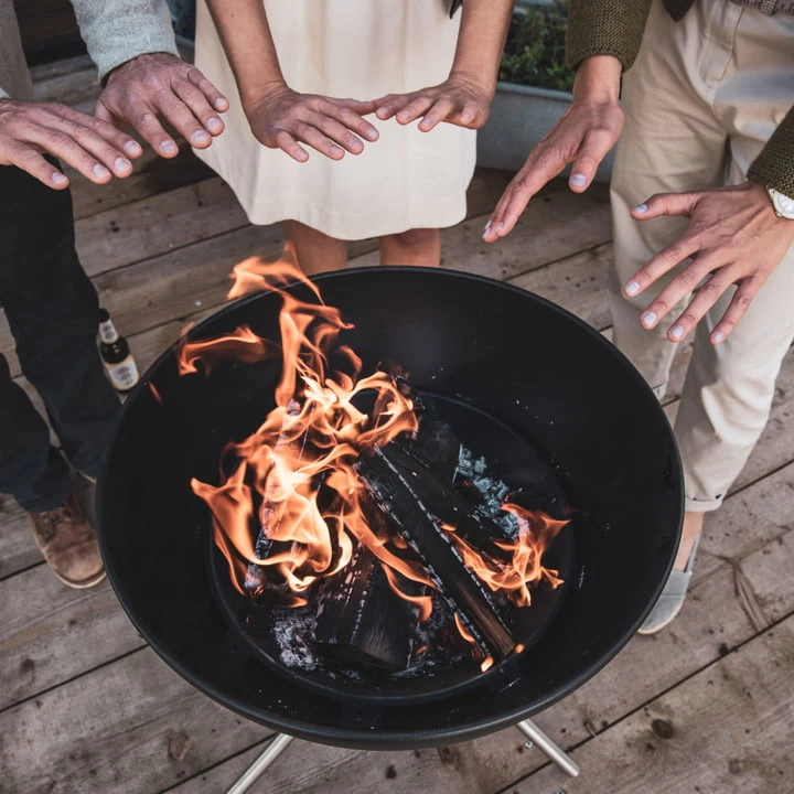 De Bowl 57 vuurschaal van de fabrikant höfats zorgt voor geweldige barbecue- en vuurervaringen! De hemisfeer en de aslade zijn geoptimaliseerd, zodat het vuur schoon kan branden dankzij het nieuwe ventilatiemechanisme. Bowl 57 is uiterst flexibel in gebruik en kan uitstekend worden gebruikt in de zomer voor barbecuen of in de winter voor opwarming bij de open haard. Door de halve bol te kantelen, kunnen de vlammen worden beschermd tegen de wind en kan de warmte effectief in precies de juiste richting worden gestuurd.