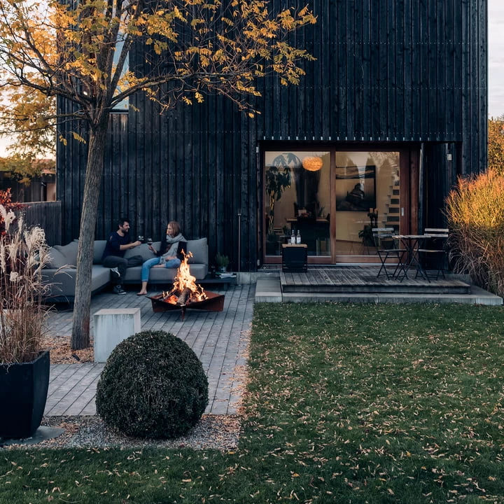 Triple is een eerbetoon aan de open haard, de meest natuurlijke vorm van warmte en gezelligheid. Het ontwerp van de vuurschaal van höfats is al even origineel: Gemaakt van massief cortenstaal, hoekig en robuust, inspireert het met eenvoudige functionaliteit en praktisch nut. Triple met eenvoudige functionaliteit en praktische voordelen. De vuurplaats, die verkrijgbaar is in verschillende afmetingen, bestaat uit drie identieke segmenten die door een eenvoudige bediening snel in elkaar kunnen worden gezet. Na gebruik kan de haard even snel worden gedemonteerd en plaatsbesparend worden opgeborgen.