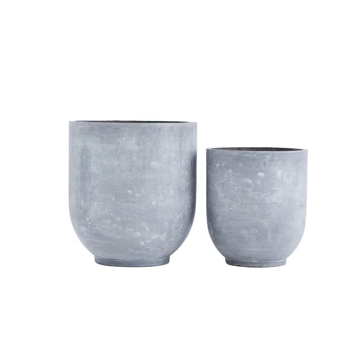 De Gard plantenpotten van House Doctor brengen mooi groen in de buitenruimte. Verkrijgbaar in sets, kunnen verschillende planten en bloemen worden gepresenteerd in de decoratieve potten. De potten zijn verkrijgbaar in verschillende maten en kleuren en zijn gemaakt van vezelklei met een mooi betonnen oppervlak.
