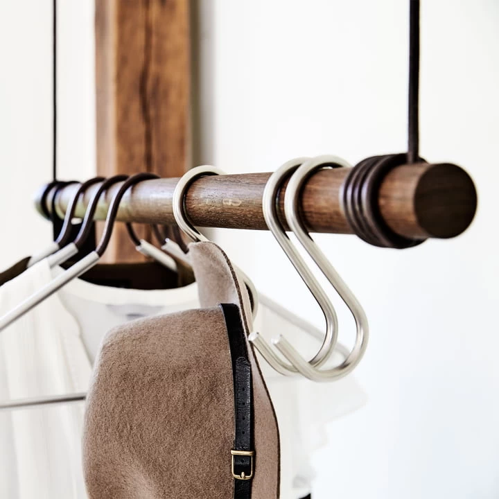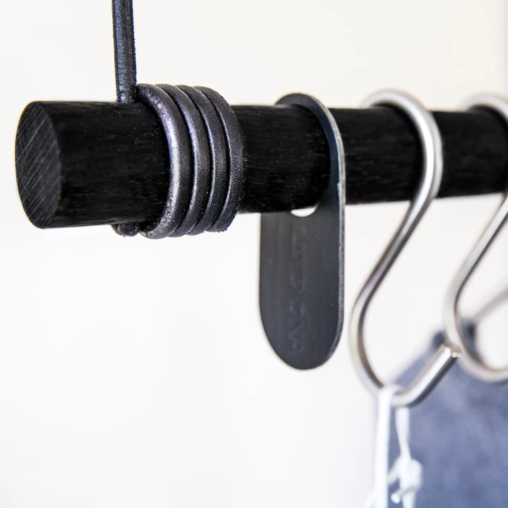 De Swing Hangkast by LindDNA is een elegante handgemaakte hangkast gemaakt van Deens eikenhout en gerecycled leer. De eiken roede biedt voldoende ruimte voor uw garderobe en wordt aan het plafond gehangen met twee dikke leren riemen van gerecycled leer. De 135 cm lange leren riemen worden met behulp van lussen in de plafondconstructie gehaakt en zijn in hoogte verstelbaar. De kapstok, die lichtjes heen en weer zwaait, doet denken aan een trapeze of een schommel en neemt door zijn constructie zeer weinig ruimte in beslag.