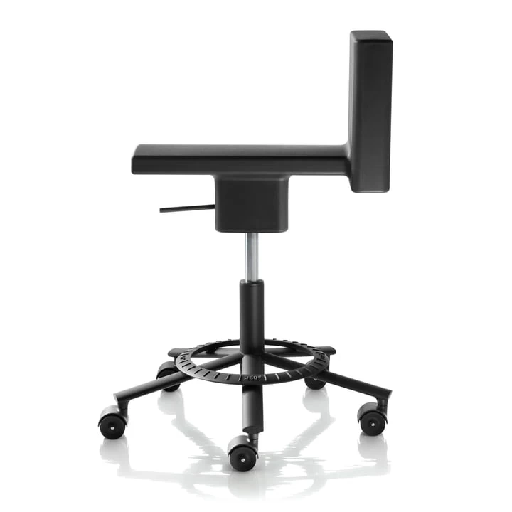 De Magis 360° bureaustoel werd ontworpen door Konstantin Grcic en maakt deel uit van een reeks meubels voor de studie of kantoor. De stoel bestaat uit een vijf-sterren roterend frame met epoxy gelakte stalen wielen. De praktische voetsteun is gemaakt van gegoten aluminium en de zelfdragende zitting is gemaakt van integraal polyurethaanschuim. Het is ook de zitting die van de stoel een blikvanger in de kamer maakt.