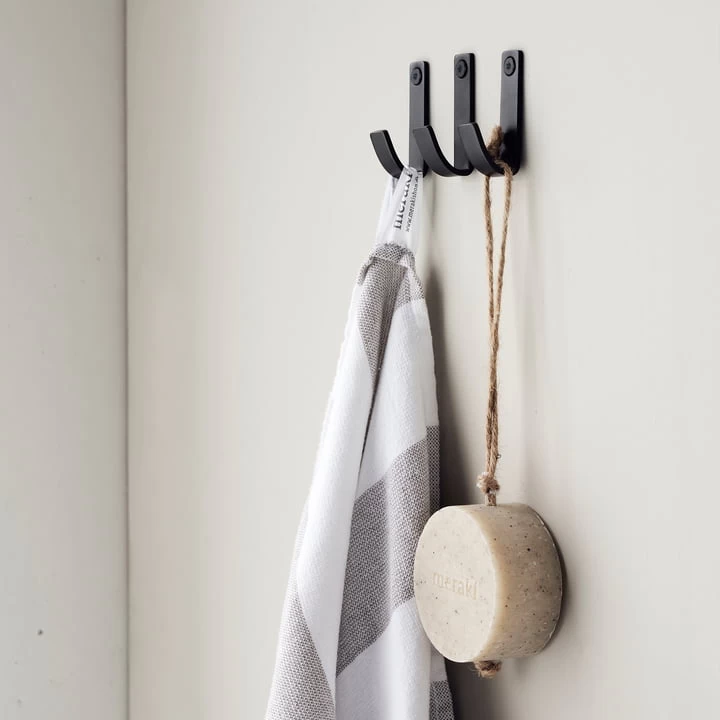 De Thapsus haken van de Deense fabrikant Meraki kunnen flexibel worden gebruikt. De roestvrijstalen haken in de set van 3 kunnen prachtig worden gemonteerd in de badkamer of zelfs in de keuken. De haken bieden ideale ruimte om handdoeken, schoonheidsproducten met lussen of sponzen in de badkamer op te hangen. In de keuken kunnen vaatdoeken en handdoeken een ideale plaats vinden. De grote haken zijn voorzien van de Meraki belettering. Verkrijgbaar in verschillende uitvoeringen.
