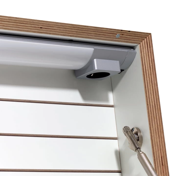 De hoogwaardige uitrusting van de Flatmate secretaris is bijzonder indrukwekkend: De zijflappen van de secretaire van Müller Small Living kunnen worden gebruikt voor het opbergen van accessoires, mappen en een 17” notebook, en er is ook een oplossing als er tot laat in de avond wordt doorgewerkt. Flatmate De secretaresse biedt een oplossing: werkplekverlichting en een stopcontact zijn al geïntegreerd.