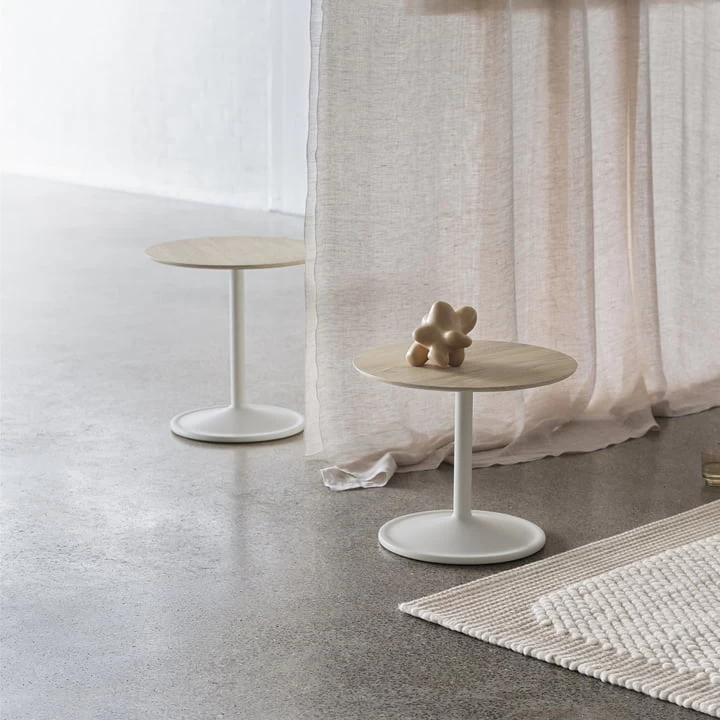De Soft bijzettafel is ontworpen door de jonge Zweedse ontwerper Jens Fager voor Muuto . Met zijn ontwerp wil hij zachte oppervlakken combineren met discrete functionaliteit. De geraffineerde lijnen en de slanke vorm van de ronde bijzettafel weerspiegelen zijn moderne elegantie. Dankzij de verschillende maten en uitvoeringen, kan de Soft Bijzettafel kan elke kamer aanvullen en op verschillende manieren worden gebruikt. Hij is geschikt als klein tafeltje voor de bank in de woonkamer, als plank in de gang of voor een gezellige zithoek. De twee maten kunnen ook uitstekend worden gecombineerd als gedekte tafels.