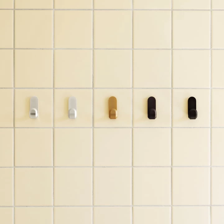 De Curve De kapstokhaak is gemaakt van voorgevormd hout en verkrijgbaar in een Scandinavisch-cool kleurenpalet. Met hun Scandinavisch-heldere expressie verfraaien alle kleuren de – vaak witte – muren in de gang. Zelfs met een enkele haak kan een grafisch accent op de muur worden gecreëerd; met meerdere op een rij of in een bepaald patroon wordt de individuele indruk perfect.