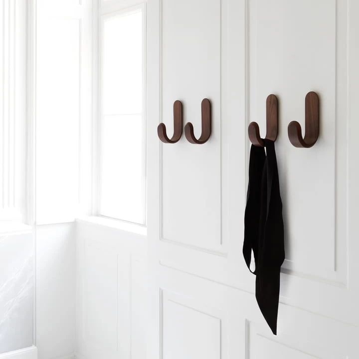 De Deense ontwerper Peter Johansen heeft een houten haak in de vorm van de letter J ontworpen voor Normann Copenhagen . De Curve wandhaak heeft een klassieke vorm en herinnert onmiddellijk en intuïtief aan zijn functie. De veelzijdige curve geeft de eenvoudige vormentaal een bijzondere verfijning en het ietwat oversized ontwerp een prachtige precisie. Curve is een muurhaak in zijn meest traditionele en symbolische vorm. Hij draagt met gemak meerdere voorwerpen, zoals kleding, tassen en accessoires.