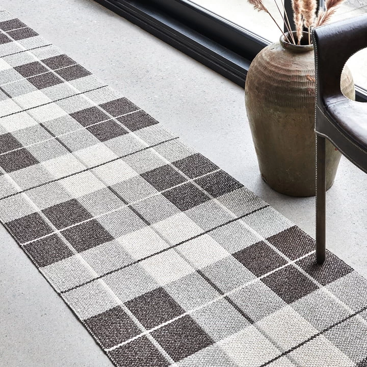 De Zweedse studio Pappelina produceert tapijten in tijdloze patronen van PVC die geschikt zijn voor gebruik binnen en buiten. Op die manier creëren zij diverse en tijdloze designaccenten. De tapijten worden op traditionele weefgetouwen in Zweden vervaardigd en inspireren door hun robuustheid en onderhoudsvriendelijkheid – en natuurlijk door hun buitengewone design.