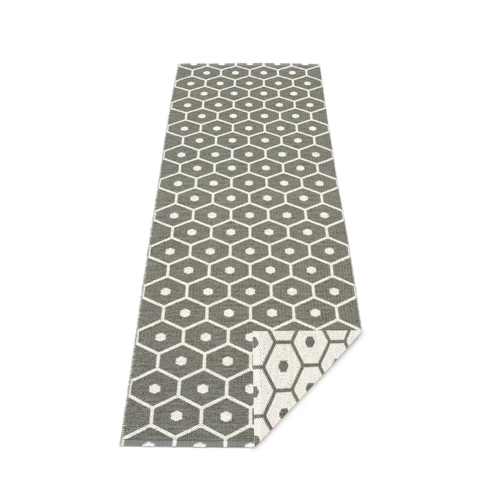 Het omkeerbare honingkleed van Pappelina dankt zijn naam aan het grafische patroon dat lijkt op een honingraatstructuur. Dankzij het discrete en toch buitengewone design is het omkeerbare Honey tapijt van Pappelina een gezellig accessoire in elke binnen- en buitenruimte. Wat maakt het bijzonder? Het tapijt kan worden omgedraaid en laat hetzelfde patroon aan de andere kant zien, maar dan in omgekeerde kleuren.