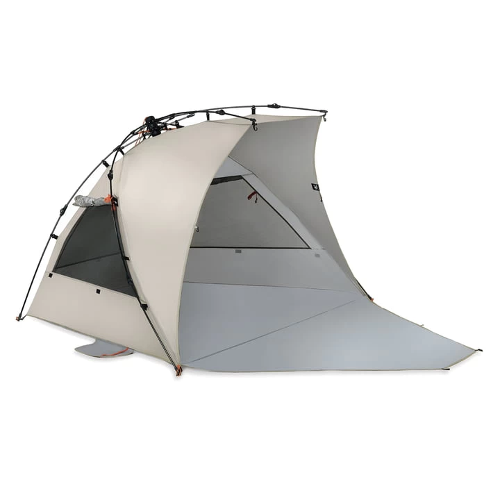 De Reka Kohu Plus strandschuilplaats maakt deel uit van de uitgebreide strandcollectie van Terra Nation. De “Good Cloud” – zoals Reka Kohu vertaalt uit de Rapanui taal – is eenvoudig te monteren en te demonteren en biedt betrouwbare bescherming tegen de zon. De PLUS-variant zorgt voor nieuw comfort, want het grondzeil kan als deur worden gebruikt en sluit de tent indien nodig eenvoudigweg.