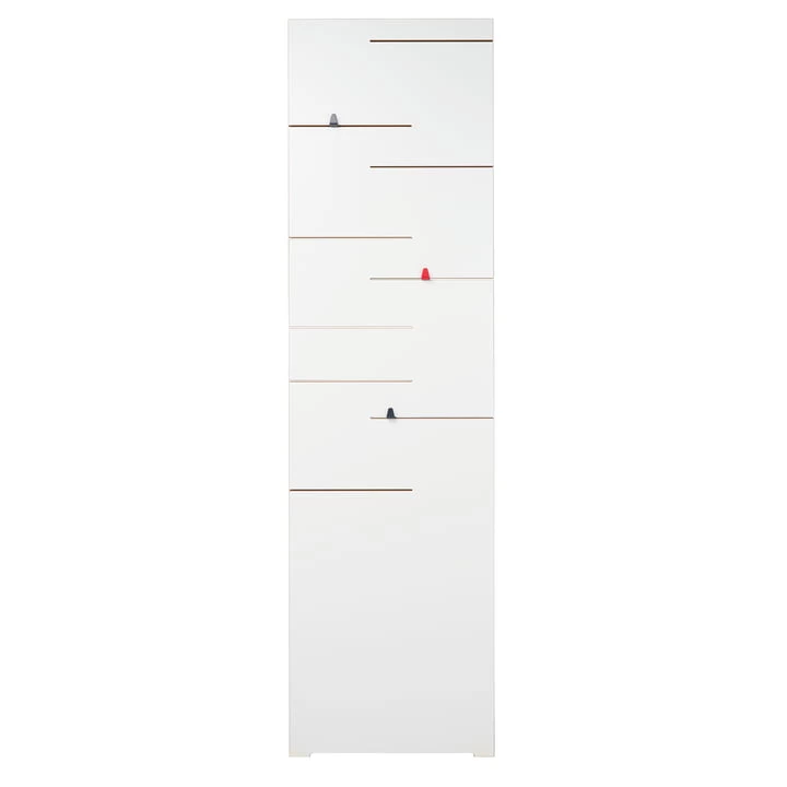 Nonchalant tegen de muur leunend, presenteert de kapstok angeber van Tojo zich met een moderne coolness. Of het nu in de kinderkamer is voor jassen of in de gang: De kapstok is een echt design statement. Schoenen, truien, sjaals, hoeden, enz. kunnen worden opgeborgen in de goed ontworpen opbergruimte. Jassen of mackintoshes worden met een kleerhanger in de intelligent gefreesde uitsparingen in het deksel gehangen. Dit is niet alleen handig, maar zorgt ook voor een natuurlijk en homogeen karakter.