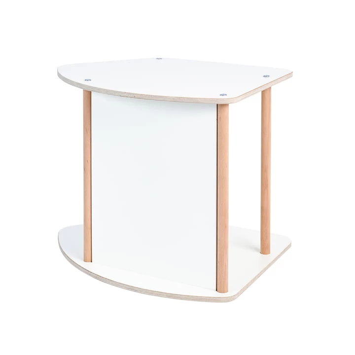 De multi kindertafel en wipstoel van Tojo is multifunctioneel. Tafel, kruk en schommel – multi geïntegreerd in één meubelstuk, afhankelijk van hoe je het plaatst. Als je het plaatst multi aan de korte zijden, lijkt het van voren op een huis en dient het als tafel om te knutselen, schilderen en spelen. Of als een praktisch krukje met een veilige standaard. Het afgeronde zijgedeelte dient echter ook als schommelbocht. Op zijn kant gelegd, kan het multi wordt opgeschrikt – veel plezier gegarandeerd!