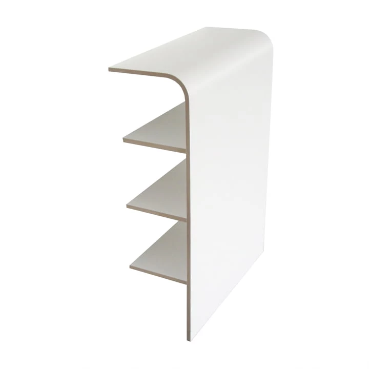 Het schoenenrek Tojo Platz is stevig, licht en stabiel zonder gaten in de muur te hoeven boren. Tojo vervaardigt de door Alexander Schenk ontworpen meubelen uit melamineharscoating MDF.
