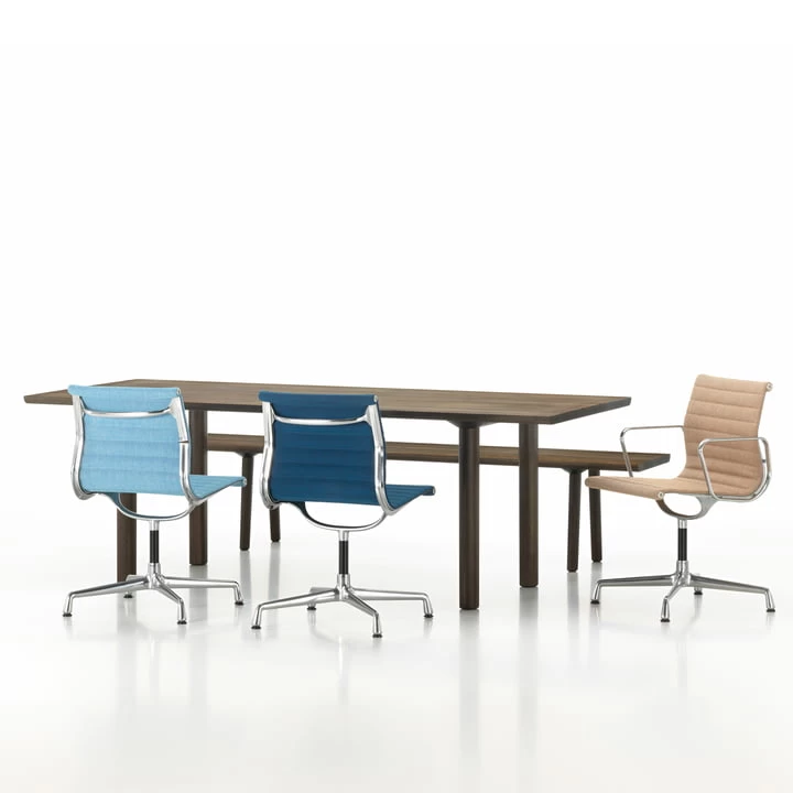 Deze kwaliteiten maken de EA 104 bureaustoel even geschikt voor kantoren, openbare ruimtes en privéruimtes. De aluminium stoel EA 104 is uitermate geschikt voor gebruik aan een tafel: Hij is slanker dan de andere aluminium stoelen, de zitpositie is meer rechtopstaand en iets hoger, de armleuningen zijn korter. De EA 104 is daarmee perfect geschikt voor private dining rooms, restaurants of voor vergaderzalen in kantoren.