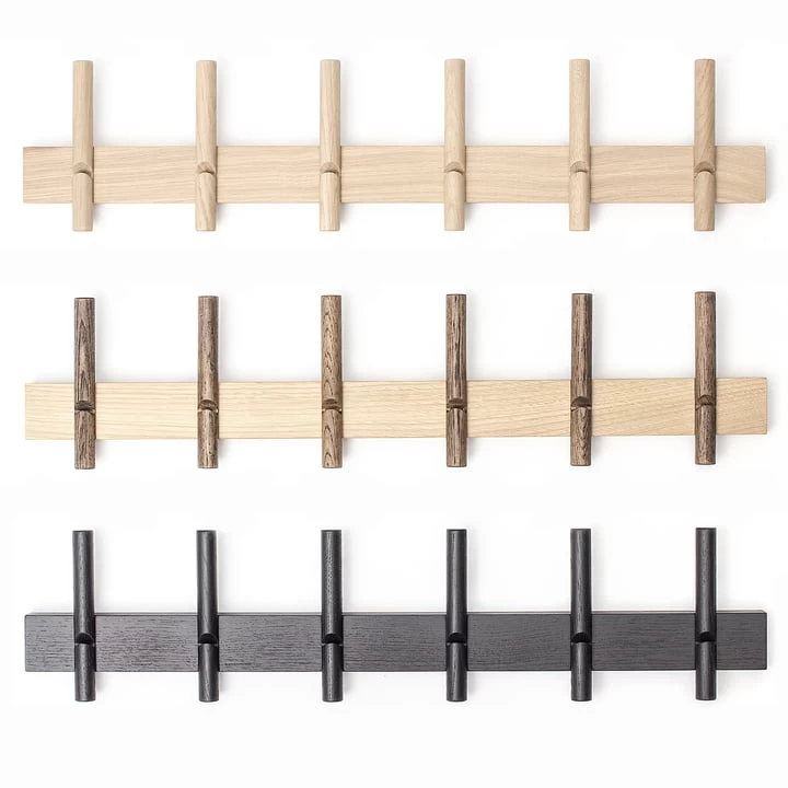 De Roon & Rahn Reces wandkapstok van We Do Wood is een rustiek element dat zorgt voor meer orde in de woonkamer. De unieke, natuurlijk eiken hangers vervangen conventionele kapstokhaken. Zo is de wandkapstok bijzonder opvallend en heeft hij tegelijkertijd een functioneel doel: de hangers kunnen meerdere kledingstukken bevatten, zodat alle sjaals, de favoriete sieraden of alledaagse benodigdheden kunnen worden ondergebracht. De wandkapstok is verkrijgbaar in verschillende uitvoeringen.