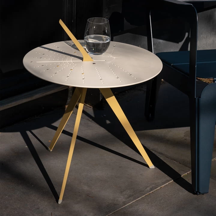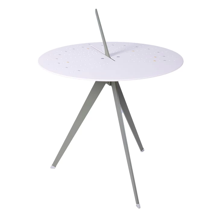 De bijzettafel Sundial van Weltevree combineert een functioneel object met de unieke esthetiek van een zonnewijzer. De universele zonnewijzer werkt overal ter wereld en verbindt de tafel met de natuur en de elementen, vooral met de zon.